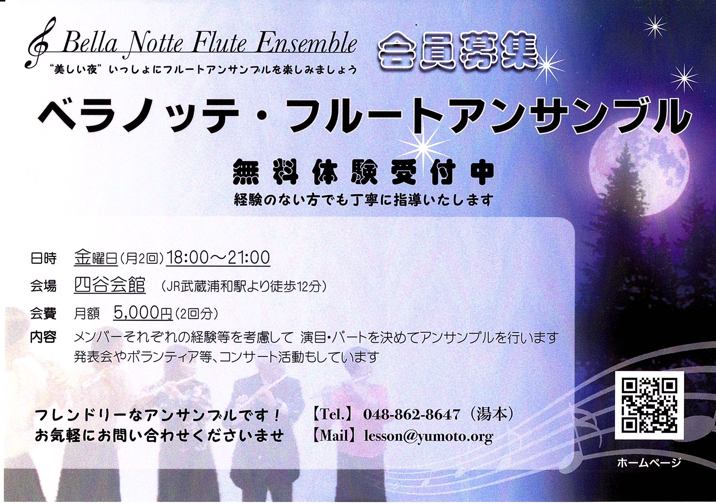 - ベラノッテ・フルートアンサンブル会員募集→ チラシ