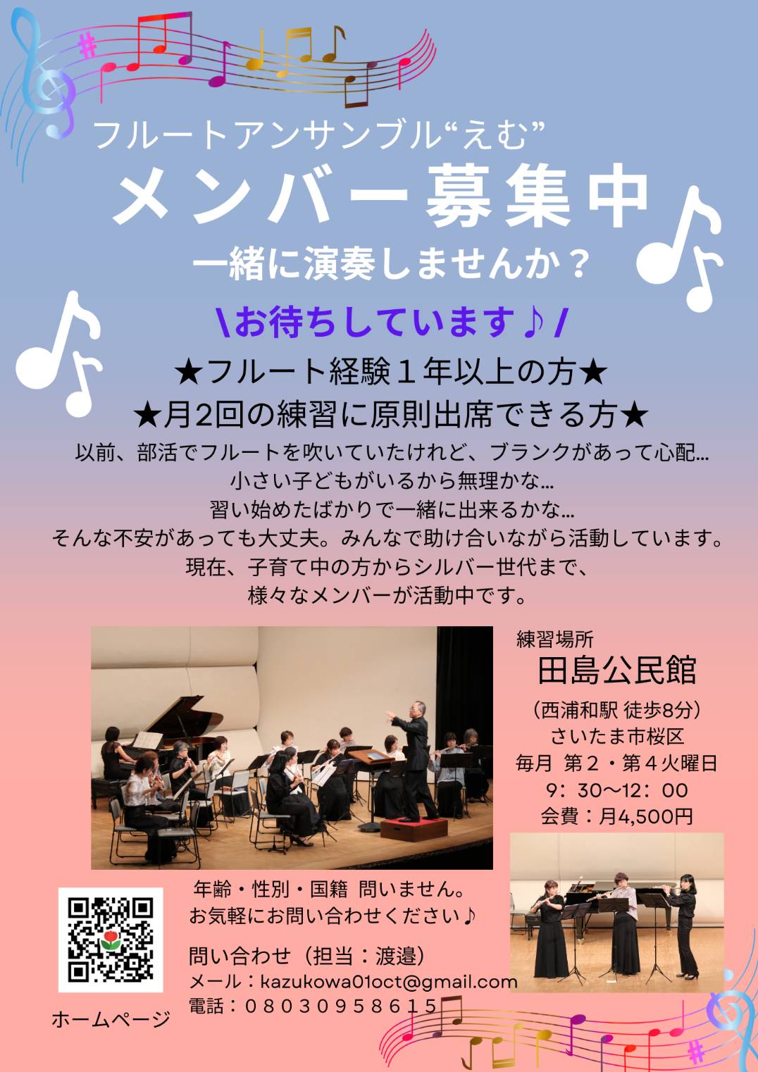 フルートアンサンブル“えむ”会員募集→ チラシ- フルートアンサンブル“えむ”